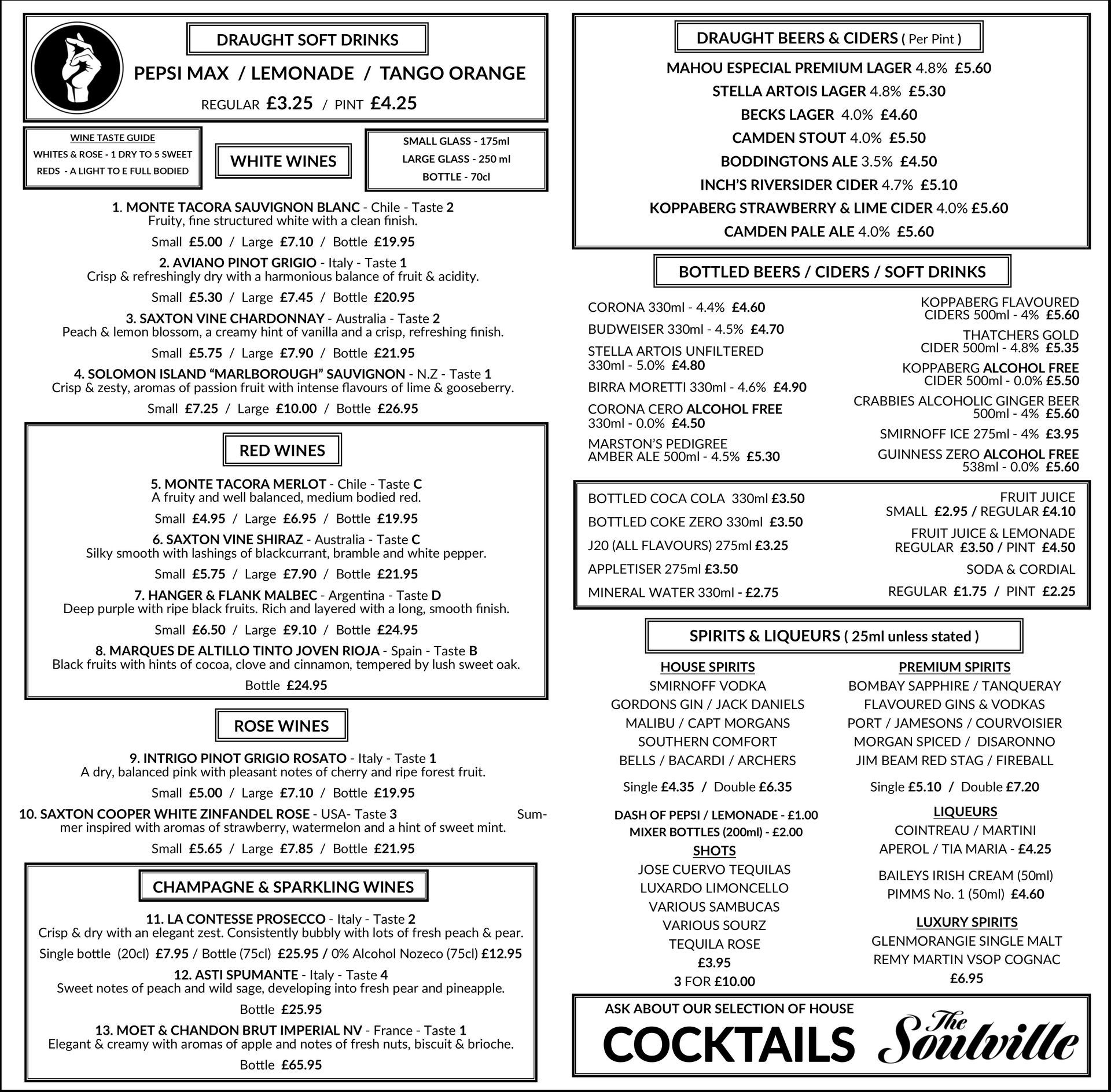 Plus a full range of hot drinks & liqueur coffees to finish....
